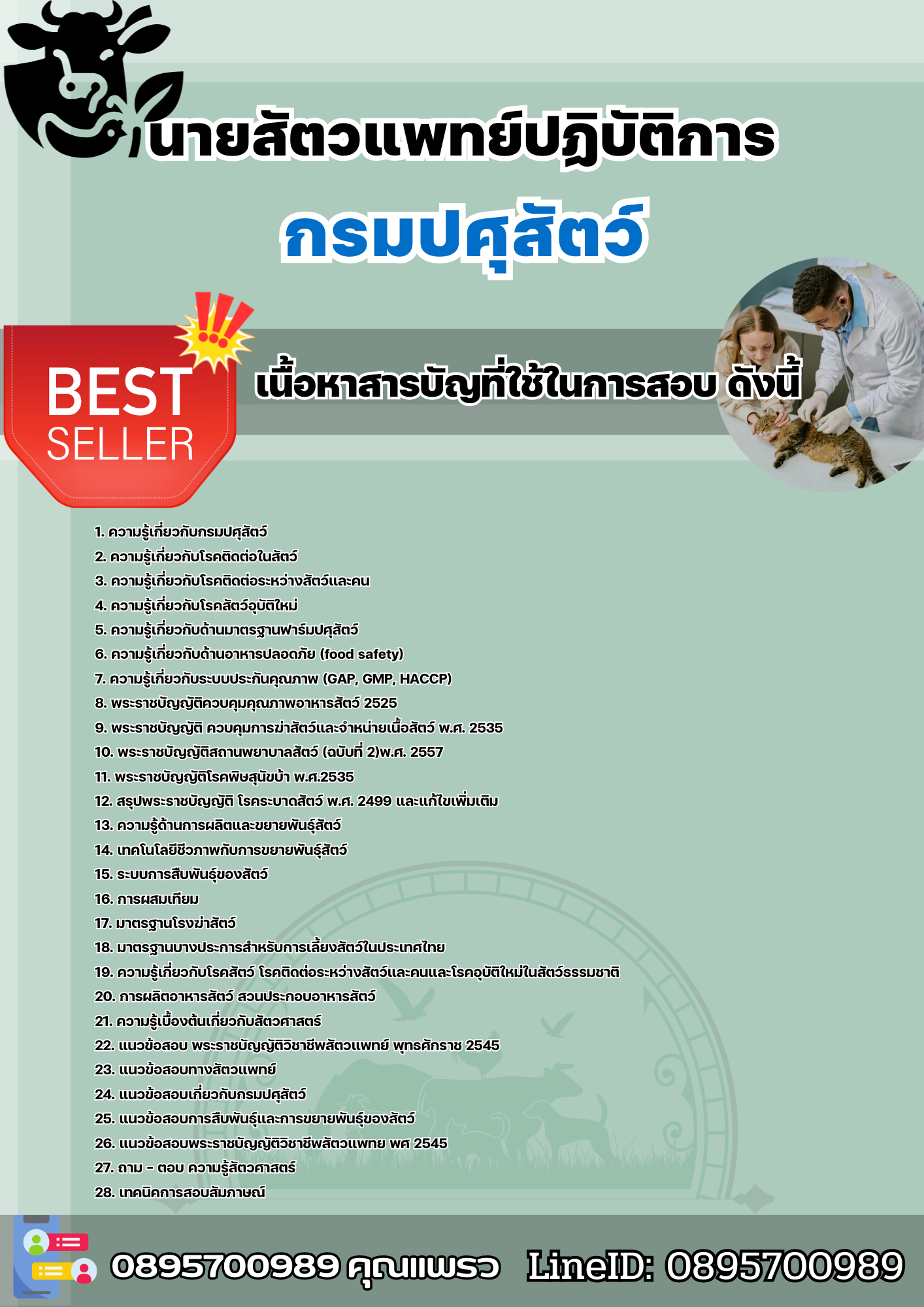 แนวข้อสอบนายสัตวแพทย์ปฏิบัติการ กรมปศุสัตว์